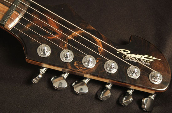 For visual reasons, as well as added strenght, headstock will always receive veneer. It can be matched to your guitar top, or then something completely different.